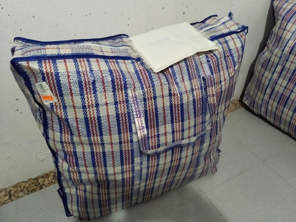 Ya hemos comenzado a empaquetar el material que nos habéis ido donando y que vamos a enviar. Una saca va repleta de calzado, tanto de niño como de adulto, y deportivo y zapato y 8 mochilas. Y en otra saca hemos puesto material escolar (cuadernos, lápices, pinturas, bolígrafos, carpetas…) y más calzado. Y todavía nos quedan sacas por rellenar…