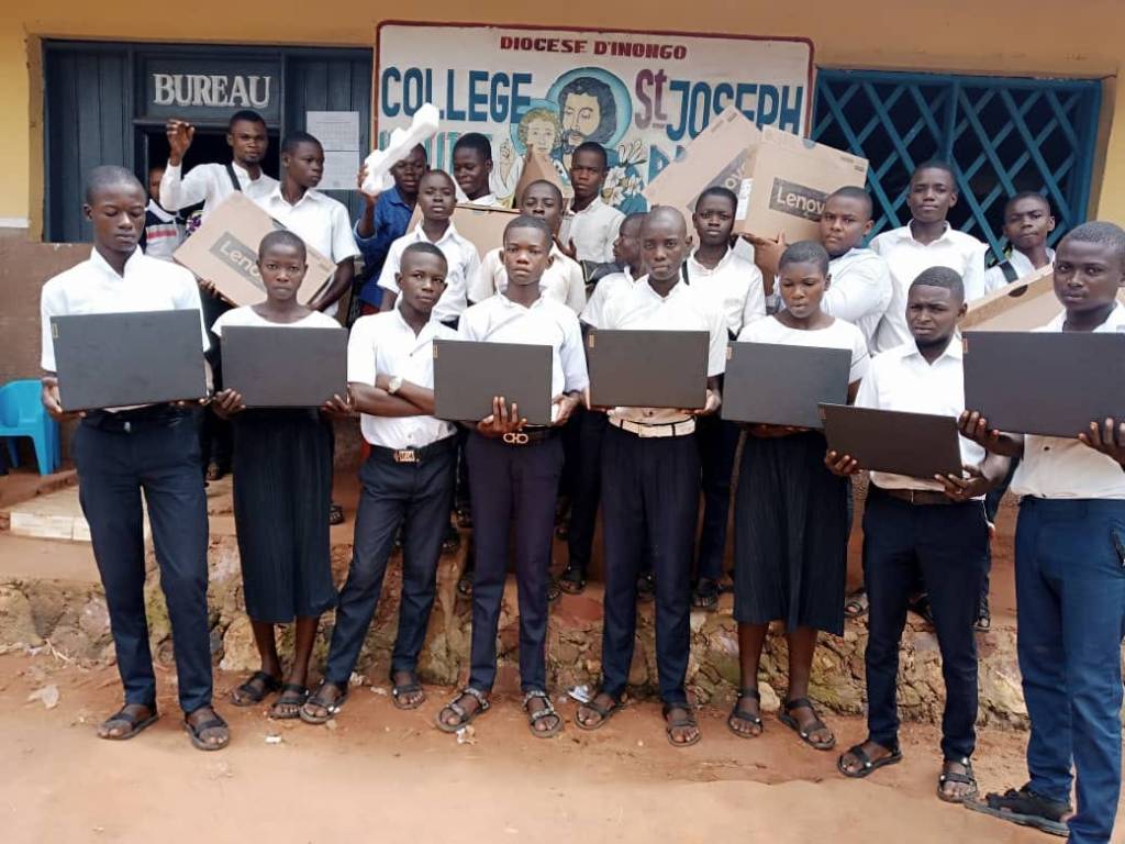 Otro proyecto más realizado! Hemos hecho entrega al colegio San José de Mushie (Congo) 7 ordenadores portátiles, para que sus alumnos puedan desarrollarse cultural y tecnológicamente. Basta con aprender sólo la teoría informática, ahora los alumnos pueden hacer prácticas con los ordenadores. Así se asegura la calidad de la formación de los jóvenes. Gracias a los socios y a las socias.